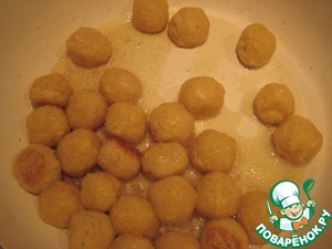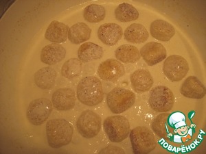 Выложить фрикадельки, обжарить 5 минут, постоянно потряхивая сковороду.