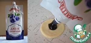 На кружок выдавливаем джем. Я использовала черничный джем ТМ Махеев.