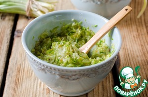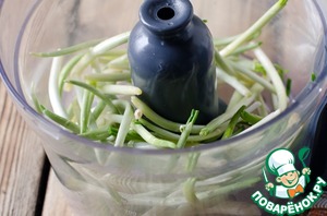 Черемшу хорошенько промыть, уложить ее в чашу кухонного процессора и, добавив 1 ст. л. растительного масла, измельчить. -
