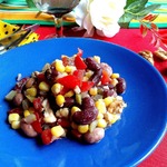Открываем банки с кукурузой и фасолью, сливаем сок