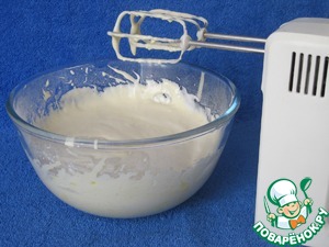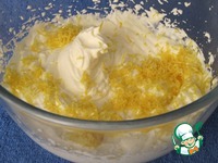 Приготовим крем. Взбить сливки с сахарной пудрой, добавим цедру лимона и лимонный сок, перемешаем.