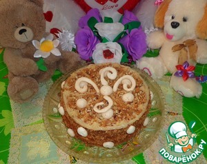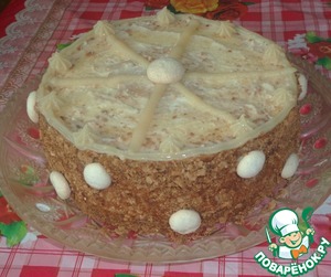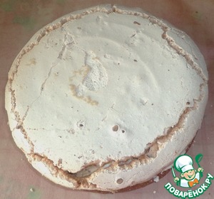 • Сверху кладем безе и снова смазываем кремом. Сверху кладем темный корж, крем и снова светлый корж.