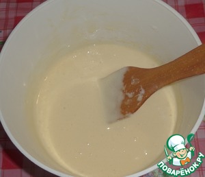 • Пока выпекаются коржи, приготовим заварной крем: яйцо взбиваем с сахаром и ванилином, добавляем манную крупу и тонкой струйкой вливаем молоко, не переставая взбивать.