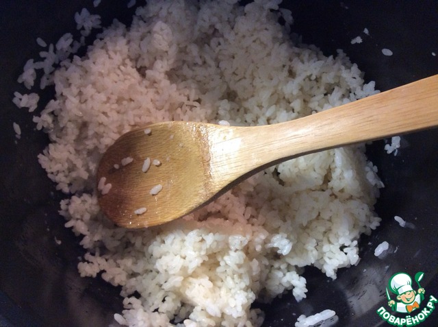 После того, как Вы перемешали весь рис с рисовой заправкой, распределите его по емкости для того, чтобы он остыл. Остужать рис нужно до температуры человеческого тела. После чего его можно использовать для приготовления суши и роллов.