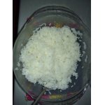 После того, как рис сварился, перекладываем его в деревянную или пластиковую емкость подходящего размера. Важно: не разбивайте комок риса до того момента, пока не польете его рисовой заправкой. На 1 кг готового риса Вам понадобится от 125 до 250 мл рисовой заправки. В моем случае я использую весь обьем на 2 кг готового риса, примерно, 300 мл. готовой заправки для риса.