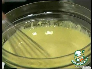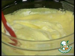 Постепенно добавлять в желтки смесь из сливок и белков, перемешивать аккуратно, нам нужно сохранить пузырьки воздуха в креме.