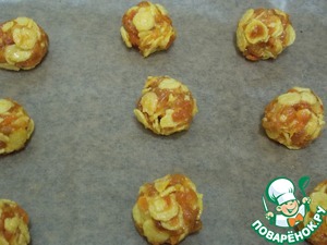 Противень застелить пекарской бумагой. Из теста сформировать шарики и положить на противень.