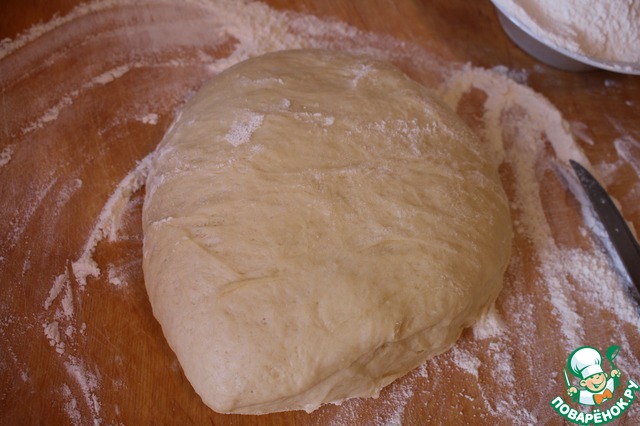 После второй обминки тесто готово. Необходимо вывалить его на припыленный мукой стол (доску).