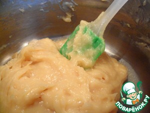 Снять с огня и добавить по одному, тщательно вымешивая, 2 яйца.
