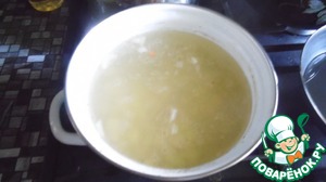 Нарезанный картофель добавляем в кипящий бульон. Варим 10 минут.