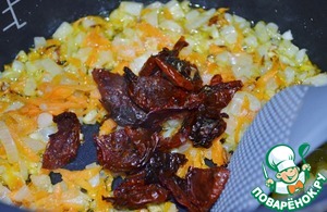 Добавить смесь итальянских трав и вяленые помидоры, перемешать.