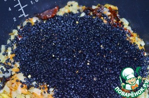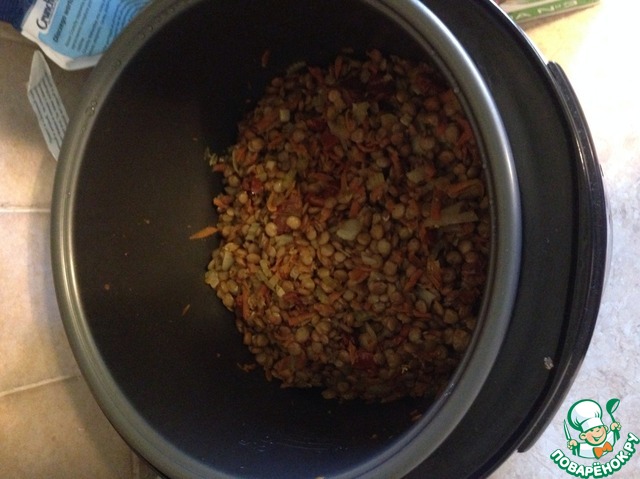 Всыпать промытую чечевицу, влить 3 стакана воды. Я взяла черную чечевицу ТМ Мистраль.
