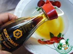 - Соевый соус (ТМ "Киккоман" - 70мл в тесто + 30мл в зажарку) — 100 мл