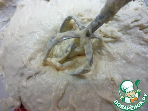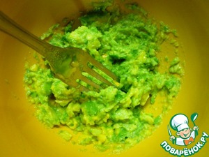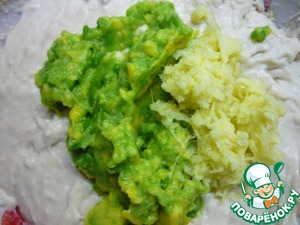 Авокадо с имбирем добавить в тесто. Хорошо размешать до однородной консистенции. Добавить оставшуюся муку и еще раз размешать.