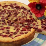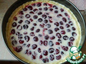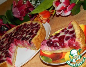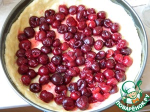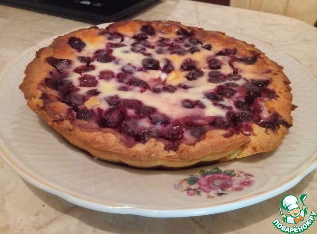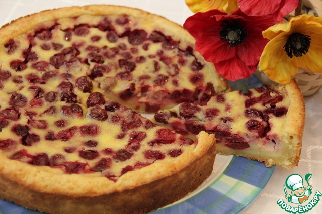 После черно-белой зимы хочется ярких красок, а этот пирог с вишней так радует глаз. А его нежная воздушная начинка шепчет мне о том, что готовить я его буду ещё и ещё...