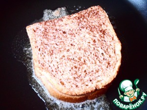 Обмакнуть хлеб с двух сторон в яичную смесь и выложить на разогретую сковороду. Обжарить на среднем огне примерно по 3 минуты с каждой стороны.