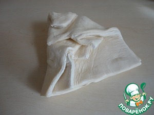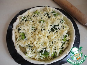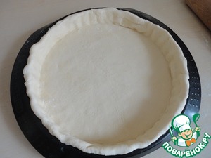 Снова раскатать тесто, больше диаметра круглой формы (для бортиков). Выложить тесто в форму.