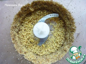 Кладем ореховую крошку и еще 1 минуту обжариваем, постоянно помешивая.