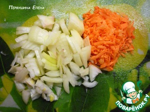 Морковь натрем на крупной терке, а лук нарезаем кубиками или полосочками.