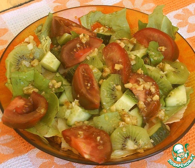 Что бы такое легкое приготовить в праздничный весенний день? Сделать вкусный салат из свежих овощей, добавить в него сочный киви и пикантную заправку (только не переборщить с чесноком и солью!). Позвать семью за стол и пожелать им: "Bon appetite!".