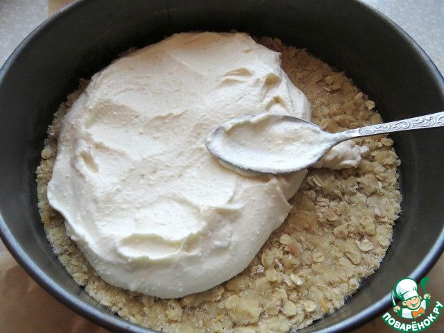 ... наносим равномерным слоем поверх творожной массы и немного подравниваем чайной ложечкой.