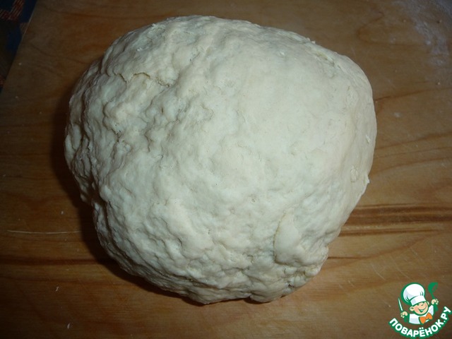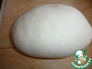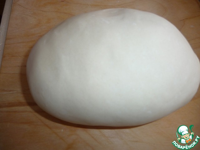 Вынуть тесто из хлебопечки, скатать в шар. Закрыть пищевой пленкой и оставить отлеживаться на 2 часа. Тесто подмесить 2 раза. -