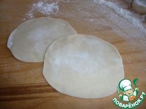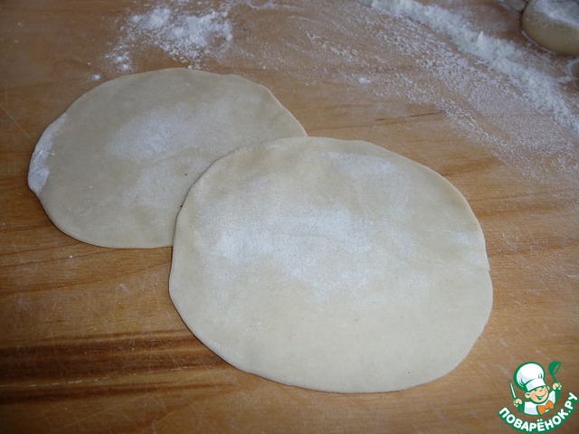 Раскатать лепешки, стараясь катать края тоньше, чем середину.