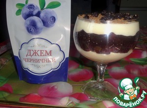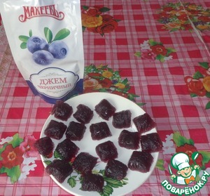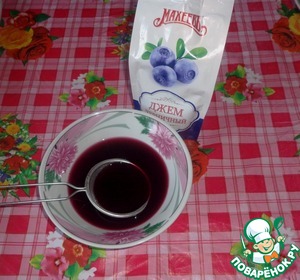 Приготовим желе из черничного джема. Для этого 6 г желатина залить холодной кипяченой водой и оставить набухать.