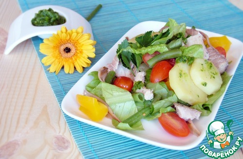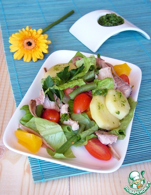 Рецепт «Весенний салат с тунцом и соусом песто»: