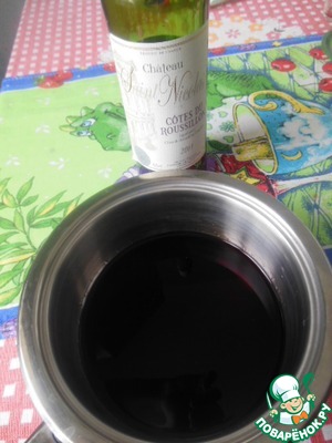 • 7) Готовим винный соус. 300 мл вина красного наливаем в кастрюльку и упариваем (кипятим) до 100 мл