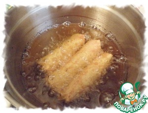 Разогреваем растительное масло и обжариваем роллы во фритюре. Обжариваются они очень быстро, отходить от них нельзя, иначе сгорят.