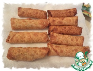 • Готовые роллы выкладываем на бумажное полотенце для удаления лишнего масла.