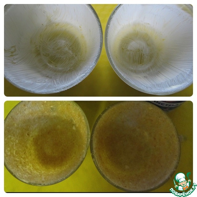 Формочки для запекания смазать сливочным маслом, посыпать коричневым сахаром, отправить в холодильник минимум на 30 минут.