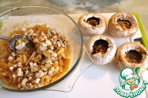 У шампиньонов удалить ножки и мелко их нарезать.