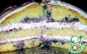 Нижнюю часть верхнего коржа пропитала вишнёвым сиропом.