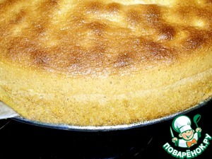 Как только верх хорошо зарумянится, накрыть бисквит фольгой, чтобы не подгорел. -