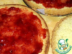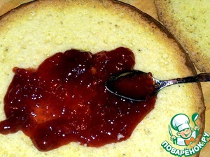 Верхнюю и среднюю часть намазала клубничным джемом. -
