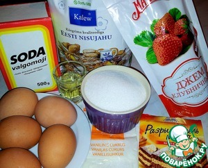 Для бисквита нам понадобятся такие ингредиенты - мука пшеничная в/с, куриные яйца, сахар, разрыхлитель теста, сода и ванильный сахар.