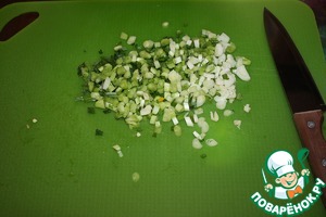 Чеснок натереть на мелкой терке, добавить к нарезанным овощам, добавить рис, перемешать