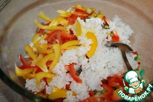 Представляю вашему вниманию легкий в исполнении салат с помидорами, болгарским перцем и рисом