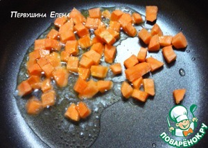 В маленькой сковороде раскаляем масло и обжариваем морковь.
