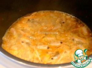 Процедить бульон, вылить его обратно в чашу МВ, тушить еще 10 минут.