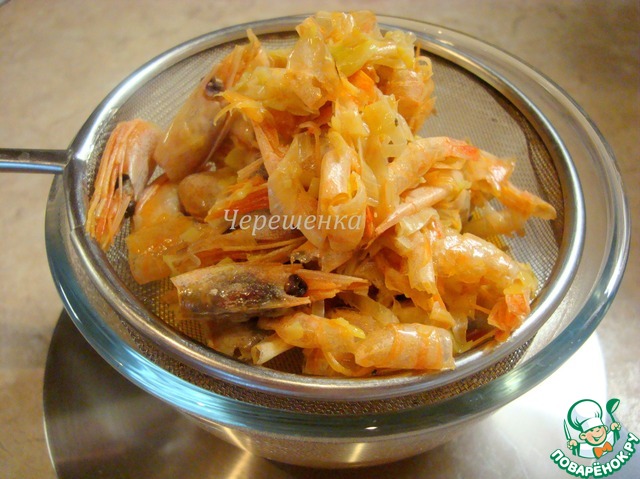 - Креветки (мелких, вес в неочищенном, замороженном виде) — 200 г