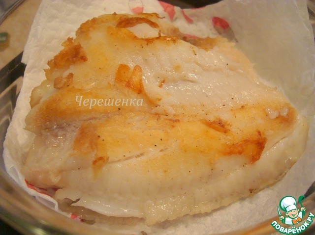 Если вы рыбу жарили, то выложите ее на бумажное полотенце для того, чтобы отдать лишний жир.