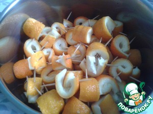 Через сутки вытаскиваем зубочистки. Взвешиваем (у меня было 500г), дбавляем сахар, воду, сок лимона.