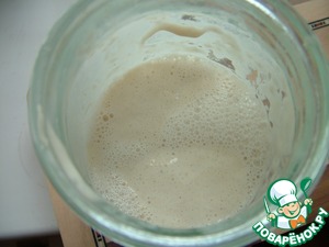 Закваску, как обычно, используем освеженную (подкормленную). Закваска 100% влажности довольно жидкая. Она не сильно увеличивается после подкормки, но пузыриться должна в любом случае!