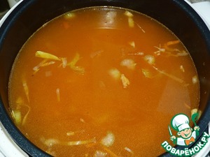 Итак, воды налили. Далее. Крышку мультиварки закрываем. Ставим программу для варки супа - у кого-то "Суп", у кого-то "Варка".