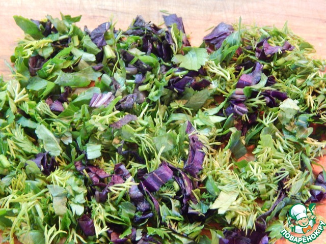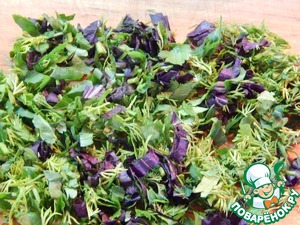 Зелень измельчаем.
