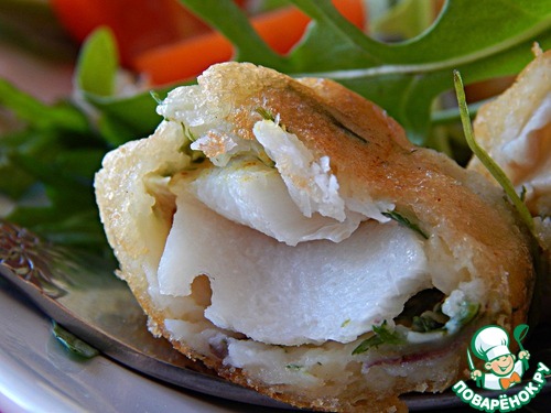 Рыба в тесте - это универсальная закуска, которая хороша как в горячем, так и в холодном виде, поскольку сохраняет отличный внешний вид и вкус. Этот вариант рыбной закуски одинаково подходит как для праздника, так и для семейного обеда или ужина. Особую пикантность придает прослойка из зелени. С удовольствием делюсь рецептом.