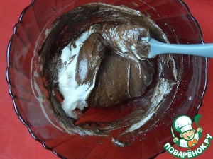 Добавляем к шоколадно-яичной массе 1/3 взбитых белков, аккуратно, движениями лопаточки снизу вверх, соединяем их с тестом.